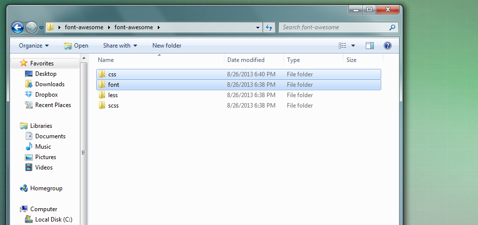 the theme folder should look like the below image. also remove the other css files that we don not need only keep on css file font-awesome.css